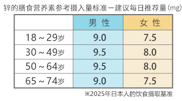推荐食用量为18~74岁的男士每日需要摄取的9.0~9.5mg※。