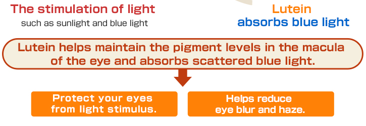 By taking Lutein, the pigment density in the macula is maintained, and scattered blue light is absorbed, leading to clearer vision and relief from blurriness and haziness.