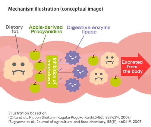 It has been suggested that procyanidins found in apples may help inhibit the activity of lipase, the enzyme responsible for breaking down fat.