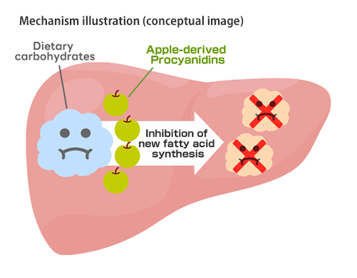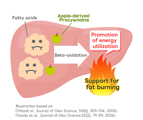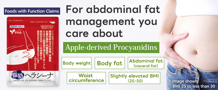 【Submitted claim】This product contains apple-derived procyanidins. It has been reported that apple-derived procyanidins may help support the reduction of body weight, body fat, abdominal fat (visceral fat), and waist circumference, as well as help improve slightly elevated BMI (25–30).